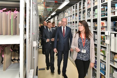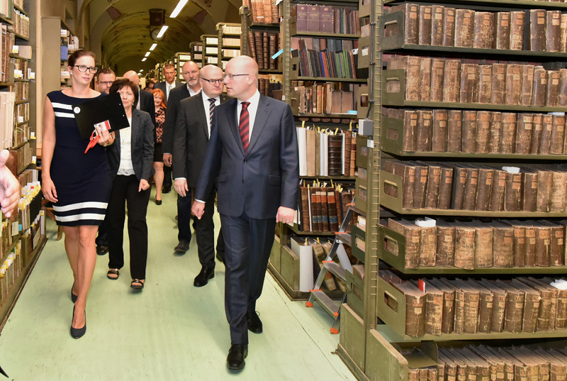Návštěva premiéra Bohuslava Sobotky a ministra kultury Daniela Hermana v Národní knihovně