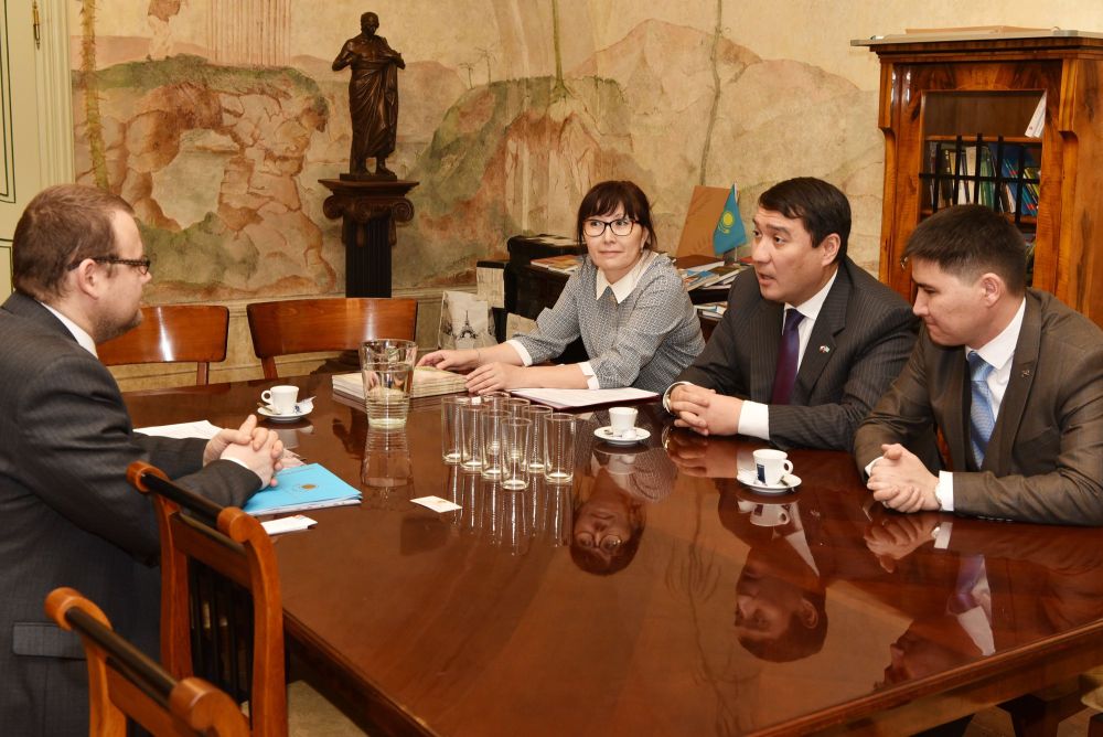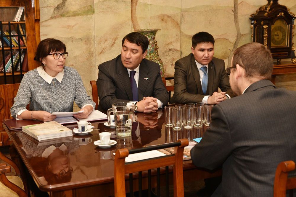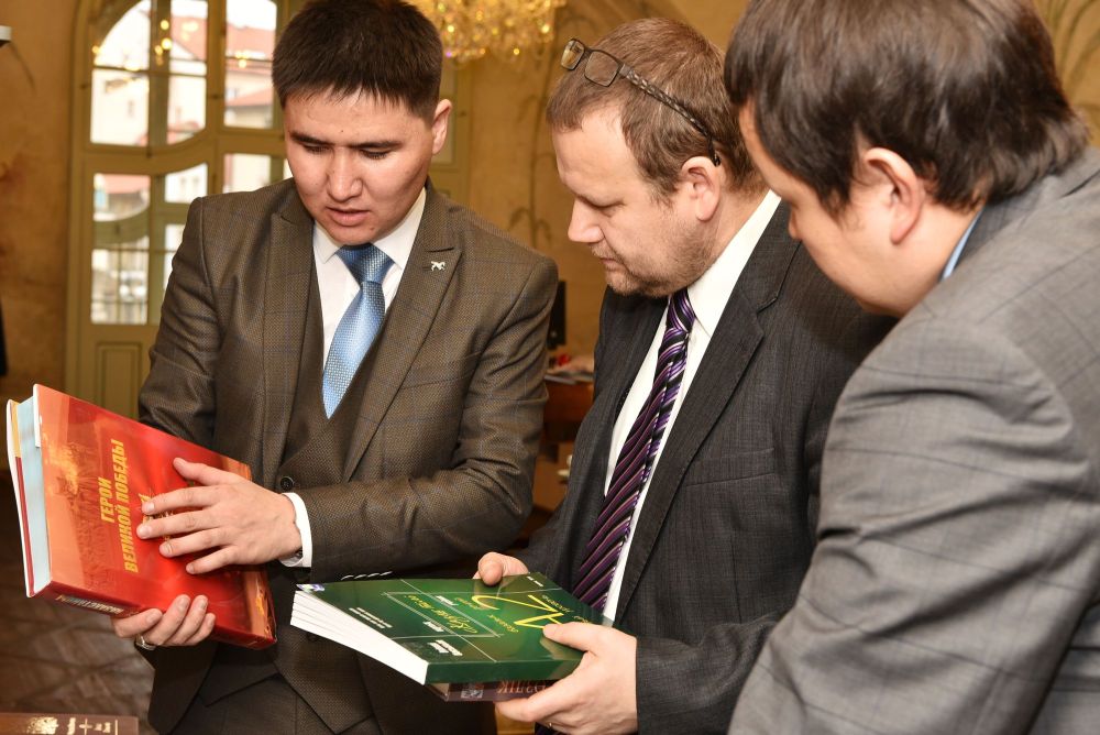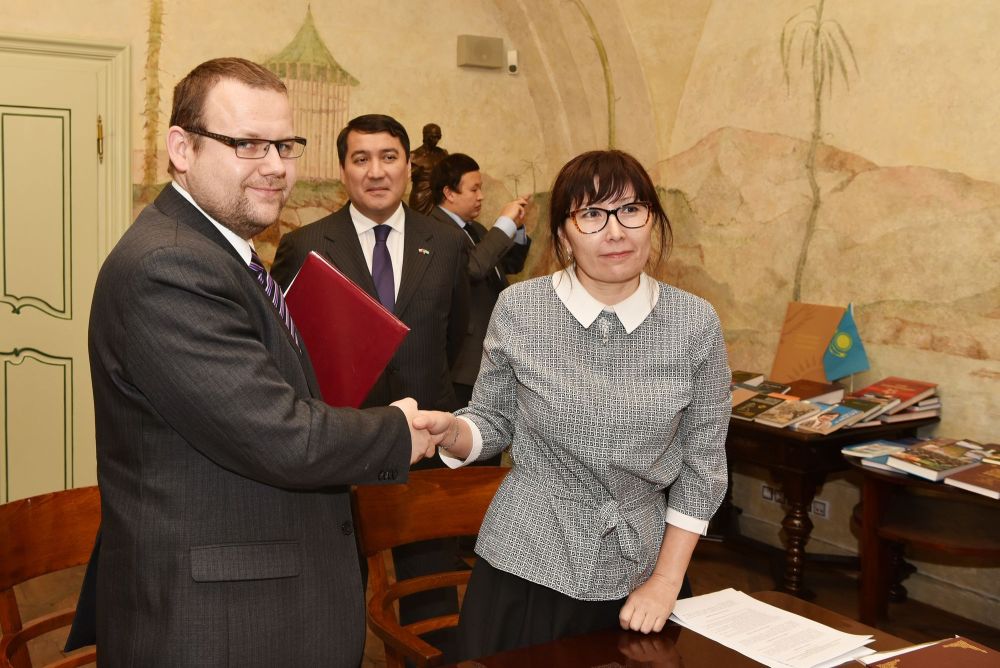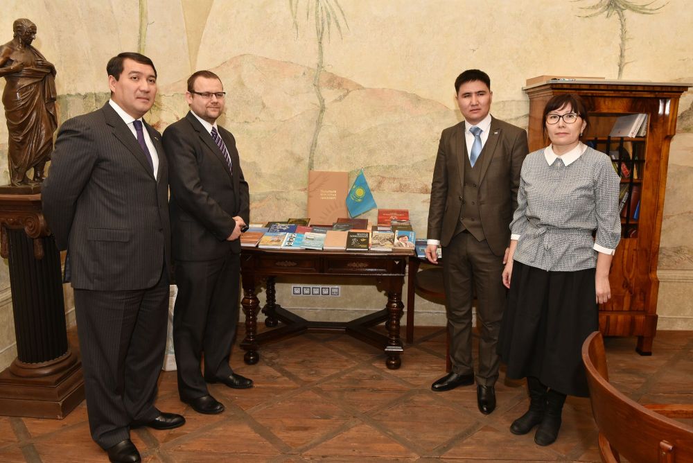 Dne 20. 12. 2017 přijal generální ředitel Národní knihovny České republiky delegaci z RGU - Národní akademické knihovny republiky Kazachstán v Astaně. Při této příležitosti bylo mezi oběma knihovnami podepsáno Memorandum o porozumění a spolupráci. Knihovna v Astaně navíc darovala do fondů NK ČR dvě stě kusů kazašských knih, které jsou reprezentativním vzorkem kazašské literární produkce, a to jak v oblasti odborné, tak krásné literatury. Foto: E. Hodíková, NK ČR.