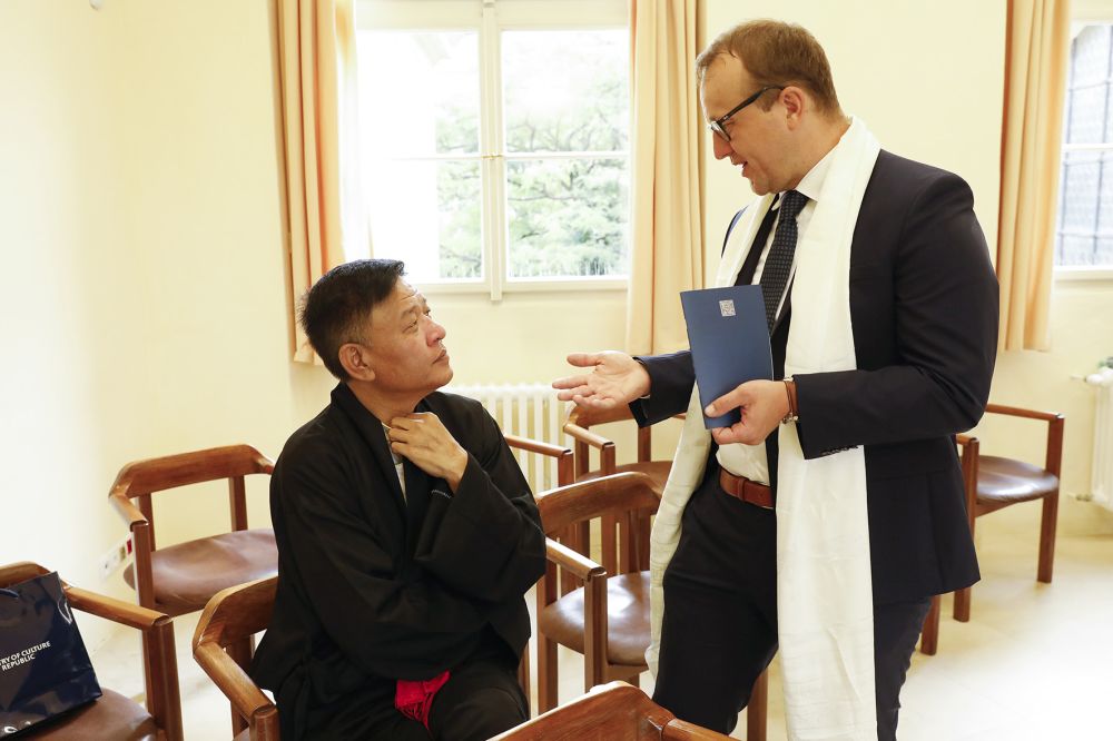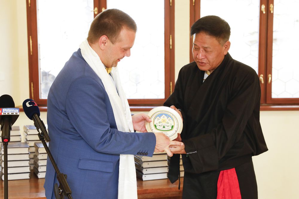 Dne 30. 8. 2022 došlo k předání knižního daru tibetské exilové vlády Národní knihovně ČR. Sbírky knihovny obohatilo 223 svazků Monlamova tibetského výkladového slovníku. Za přítomnosti ministra kultury Martina Baxy jej z rukou pana Sikjong Penpa Tseringa, předsedy Ústřední tibetské správy, převzal generální ředitel NK ČR Tomáš Foltýn. Foto: Miroslav Kučera.