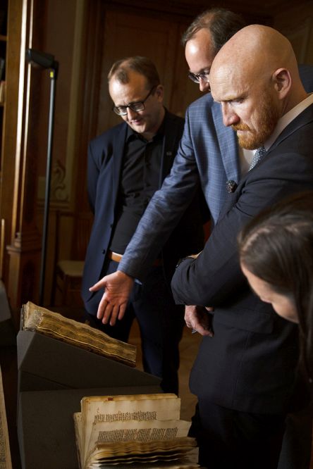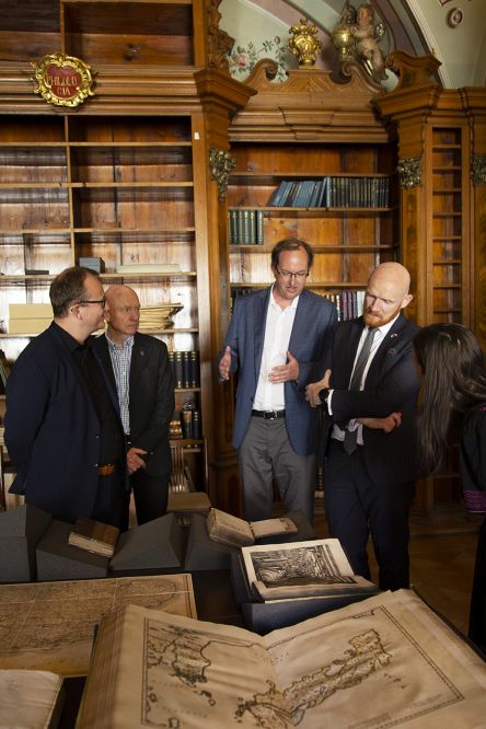 V úterý 30. 5. 2023 navštívil Národní knihovnu České republiky J. E. velvyslanec Velké Británie v České republice Matt Field. Společně s generálním ředitelem Národní knihovny ČR Tomášem Foltýnem a náměstkem pro vědu, výzkum a mezinárodní vztahy diskutovali otázky dlouhodobé spolupráce British Library a Národní knihovny ČR v oblasti digitalizace historických i novodobých fondů, novou koncepcí British Library pro nadcházející období, oslavy jejího padesátého výročí a přirozeně i možnosti dalších společných aktivit v oblasti propagace kultury a vzdělávání obou zemí. J. E. Matt Field si zároveň prohlédl unikátní prostory Klementina a seznámil se se zajímavými dokumenty ze sbírek Národní knihovny ČR, které akcentovali jak relevanci k historii Spojeného království, tak osobní zájem J. E. Matta Fielda o japonské dějiny. Foto: M. Tichá, NK ČR.