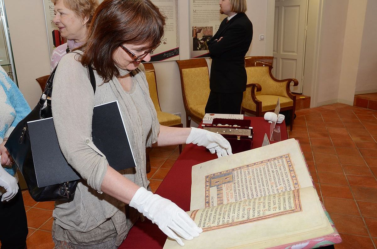 Návštěvník výstavy má jedinečnou příležitost se prostřednictvím faksimilií seznámit s vzácnými rukopisy a inkunábulemi, které jsou běžně nedostupné - dokonce bude možné do nich nahlédnout a prolistovat je. Foto: Eva Hodíková, NK ČR.