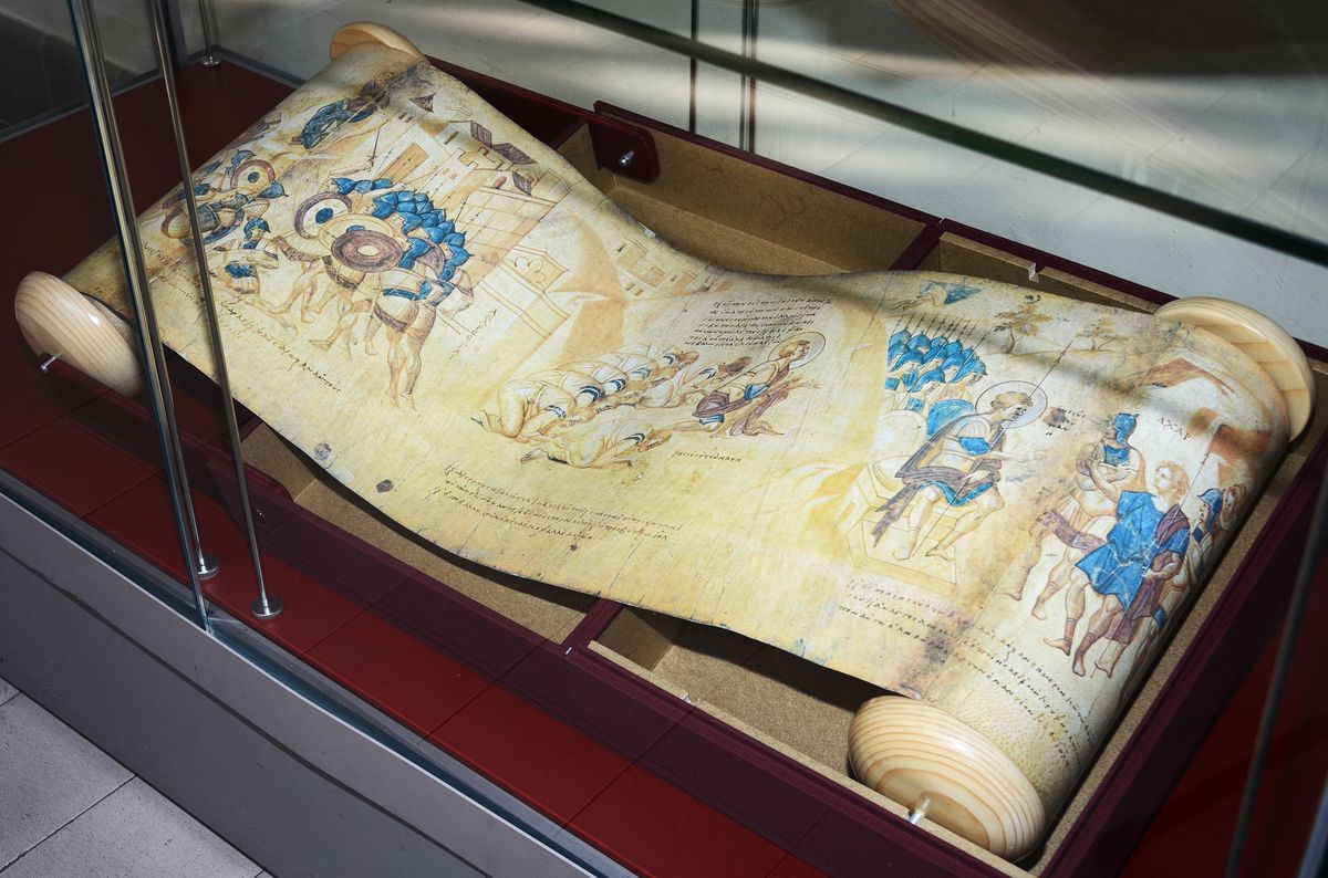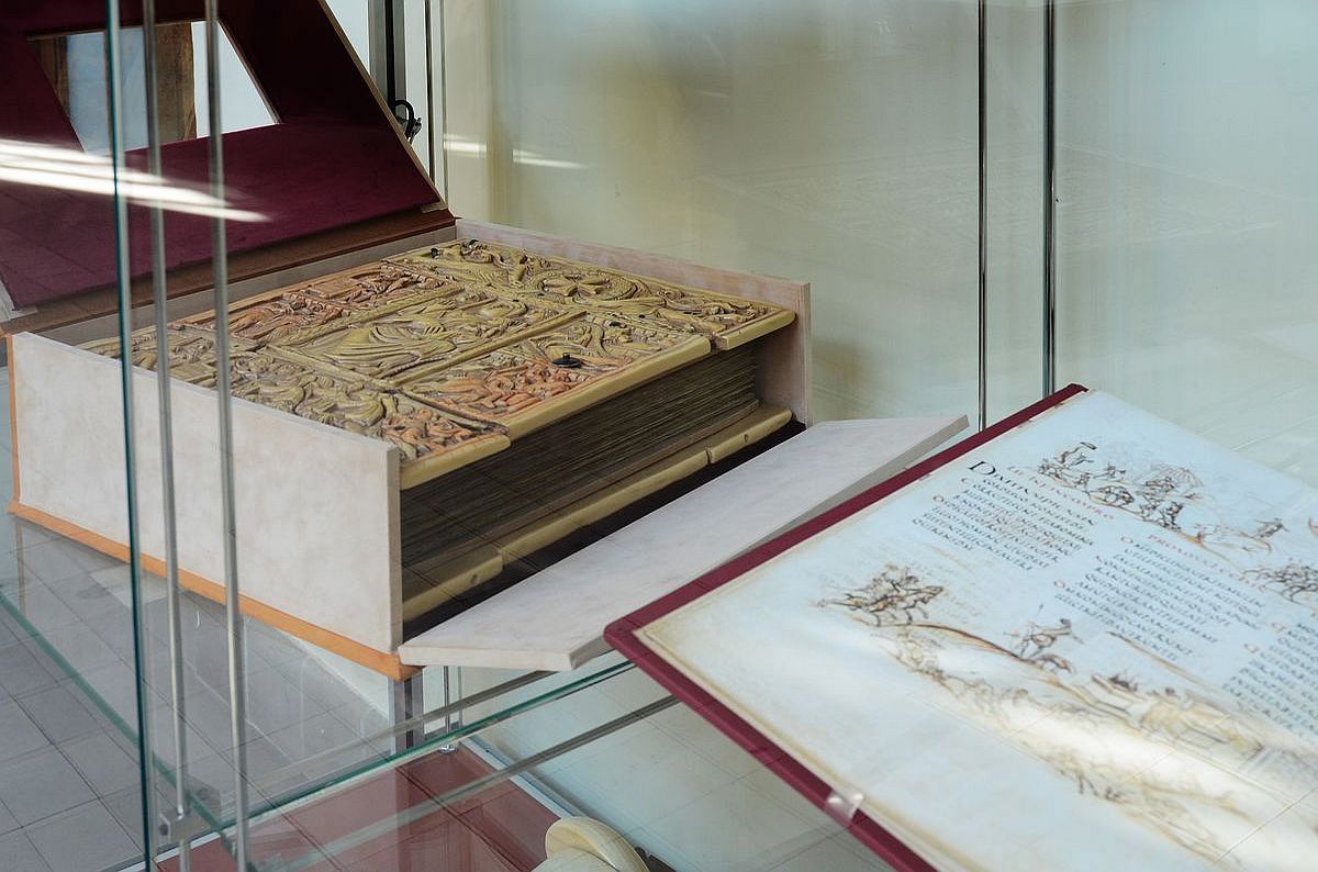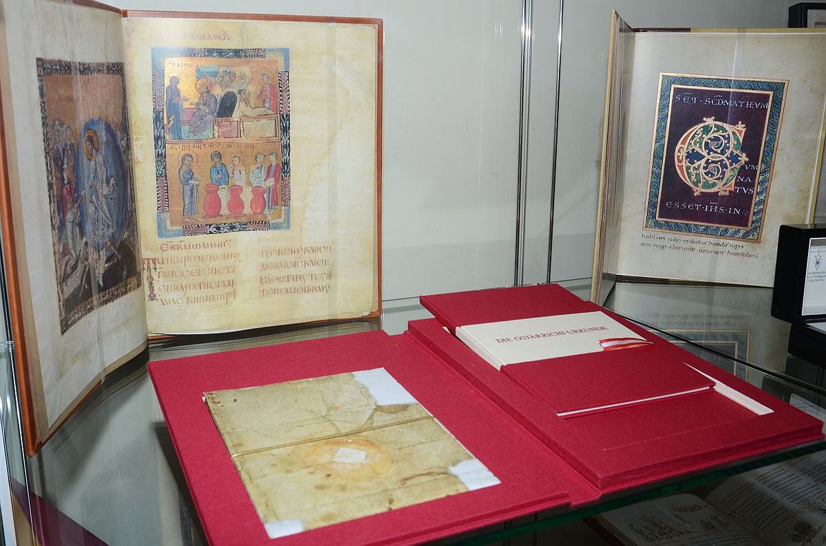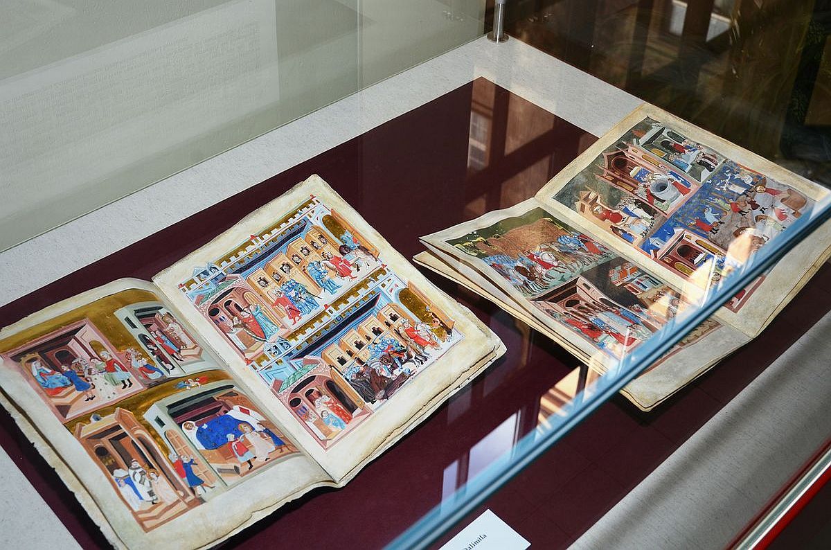Fotogalerie z výstavy: Legenda o svatém Václavu ožívá prostřednictvím jeho mnohých zobrazení ze středověkých výtvarných epických cyklů na výstavě Svatý Václav ve středověkém komiksu uspořádané Národní knihovnou ČR ve spolupráci s vydavatelstvím faksimilií Adeva. Prezentovaným faksimiliím a uměleckým kopiím, jejichž iluminace mohou svým spojením obrazu a textu připomínat dnešní komiks, bude od 7. března do 13. dubna 2013 vévodit Život svatého Václava mistra Matyáše Hutského od Křivoklátu. Foto: Eva Hodíková, NK ČR.