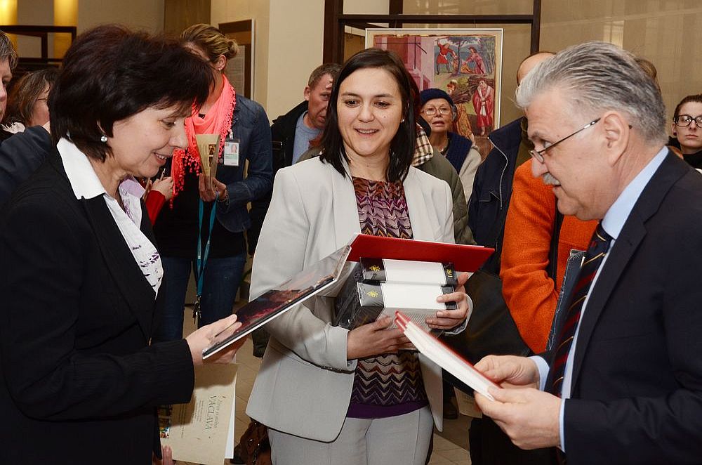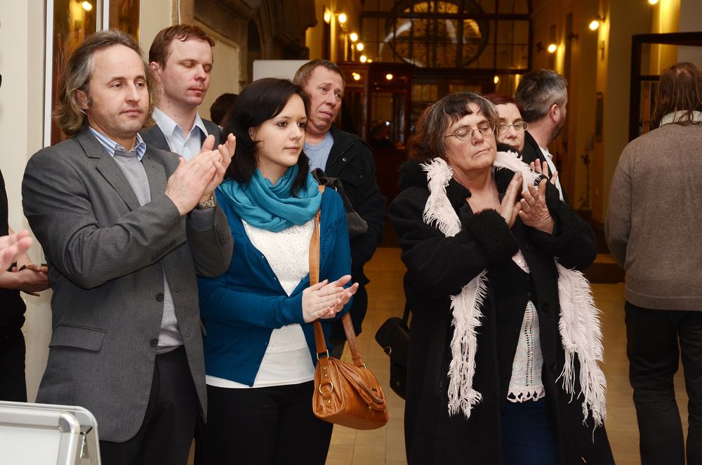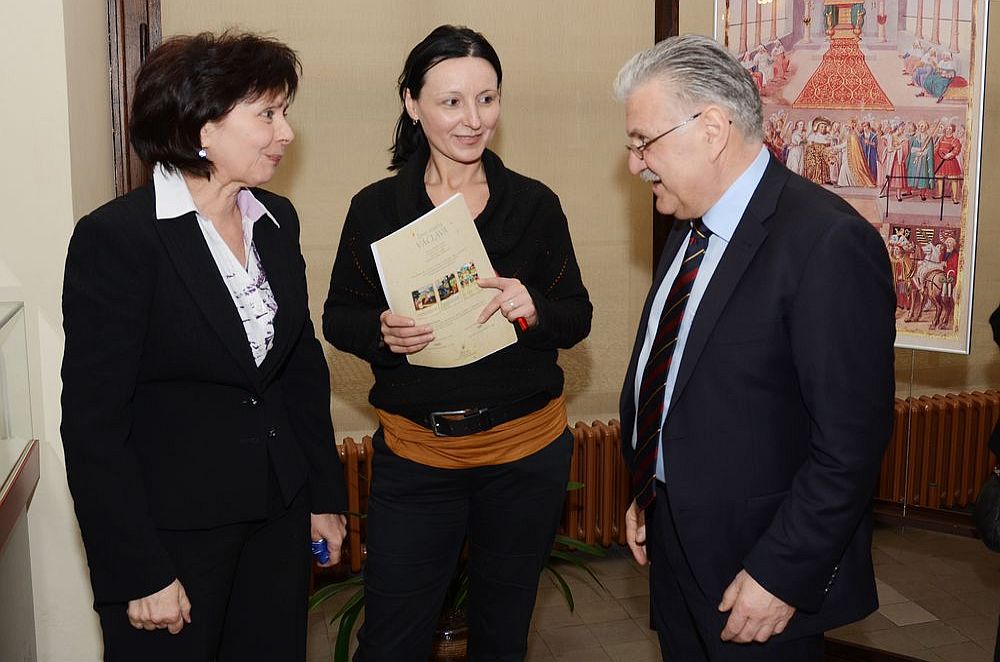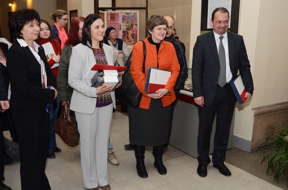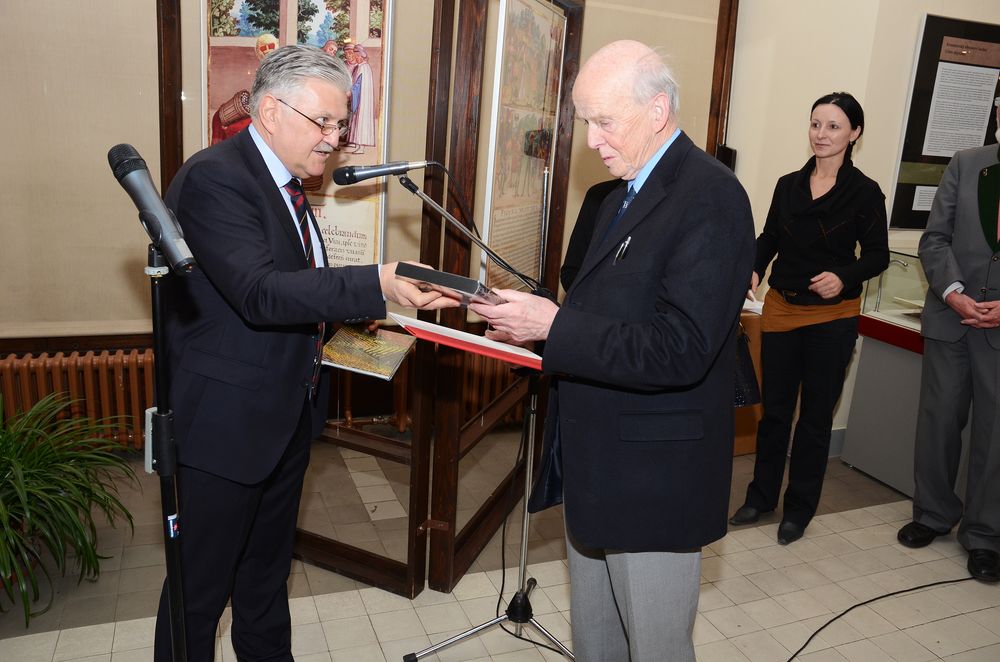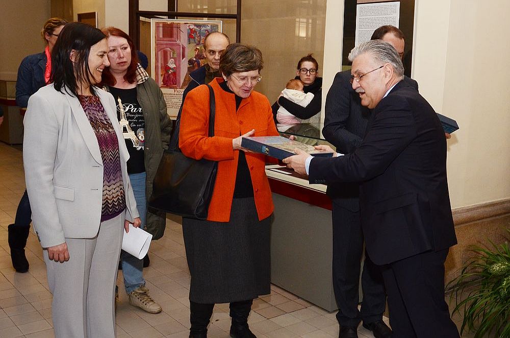 Fotogalerie z vernisáže výstavy: Legenda o svatém Václavu ožívá prostřednictvím jeho mnohých zobrazení ze středověkých výtvarných epických cyklů na výstavě Svatý Václav ve středověkém komiksu uspořádané Národní knihovnou ČR ve spolupráci s vydavatelstvím faksimilií Adeva. Prezentovaným faksimiliím a uměleckým kopiím, jejichž iluminace mohou svým spojením obrazu a textu připomínat dnešní komiks, bude od 7. března do 13. dubna 2013 vévodit Život svatého Václava mistra Matyáše Hutského od Křivoklátu. Foto: Eva Hodíková, NK ČR.