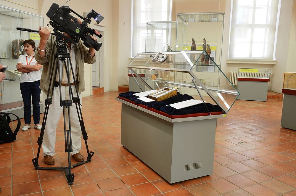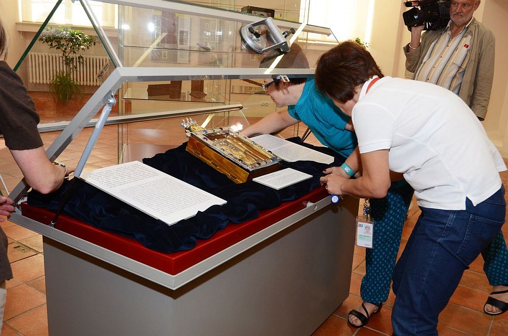 Fotogalerie z instalace Palladia země české ve Výstavním sále Galerie Klementinum, kde bude vystaveno ve dnech 6. - 7. června 2014 v rámci výstavy Obrázky z pouti. Foto: Eva Hodíková, NK ČR.