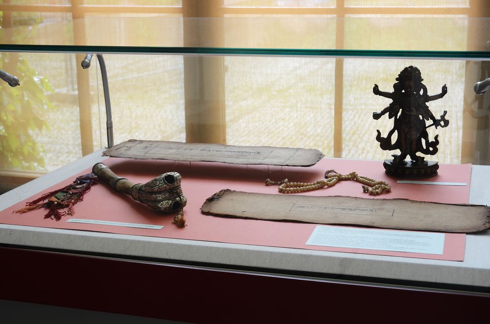 Výstava představuje tradiční tibetskou knižní kulturu a sakrální malby z 1. pol. 20. století. Tisky, thangky, dřevěné tiskařské matrice i votivní předměty pocházejí ze soukromých sbírek v Ladaku, Tibetu, Mongolsku a Nepálu. Výstava probíhá pod záštitou ministra kultury České republiky Daniela Hermana. Výstavní chodba v přízemí - 26. 5. - 9. 7. 2016. Foto: Eva Hodíková, NK ČR.