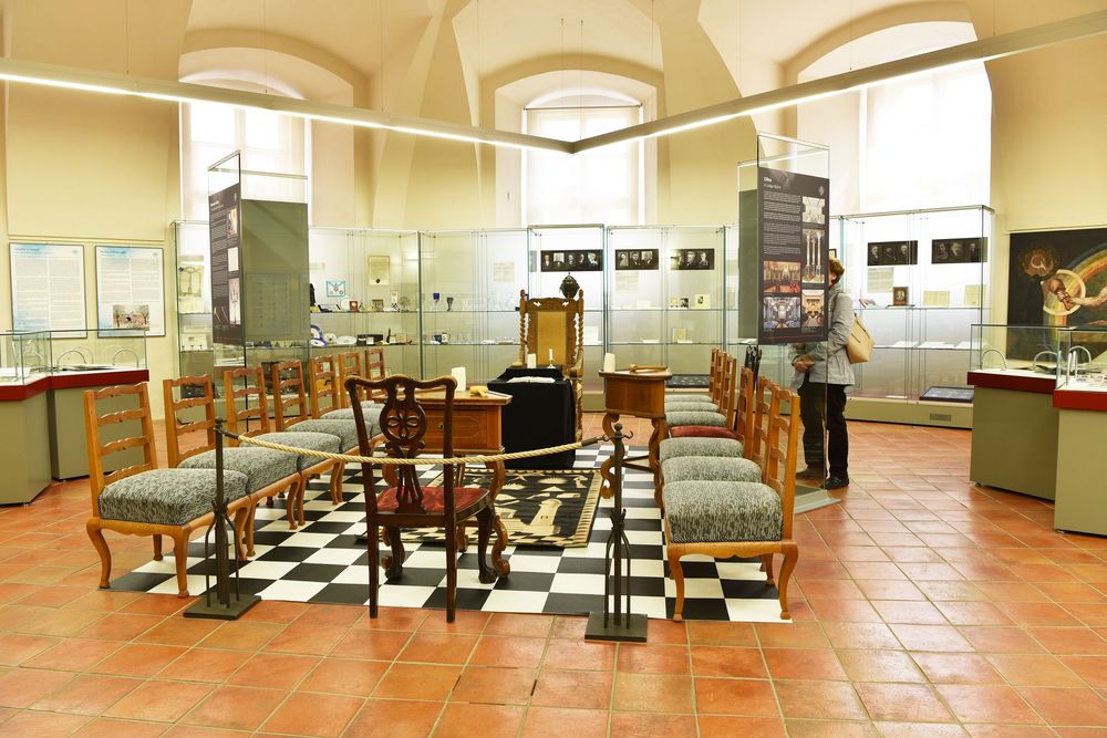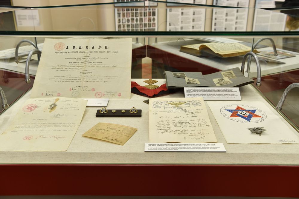 Fotogalerie z výstavy, která přibližuje vznik a historii svobodných zednářů v českých zemích. Představuje především Lóži Národ, která byla založena necelý půlrok po vzniku Československé republiky. S osudy lóže i jejích významných členů nás seznámí samotní svobodní zednáři. Foto: E. Hodíková, NK ČR.