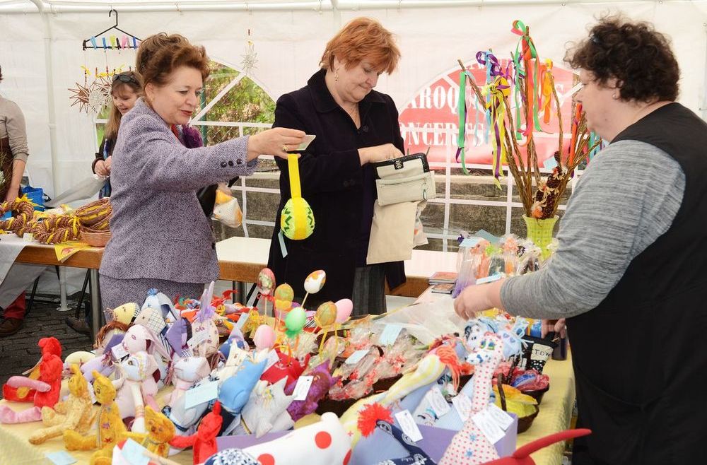 Národní knihovna ČR a Klub tvořivých knihovníků SKIP pořádali ve čtvrtek 26. 3. 2015 na hlavním nádvoří Klementina velikonoční jarmark. K vidění a zakoupení byly textilie z patchworku, šperky z nejrůznějších materiálů, velikonoční dekorace, výrobky z chráněných dílen a další. Výtěžek byl věnován nadačnímu fondu Klíček na provoz hospice. Foto: Eva Hodíková, NK ČR.