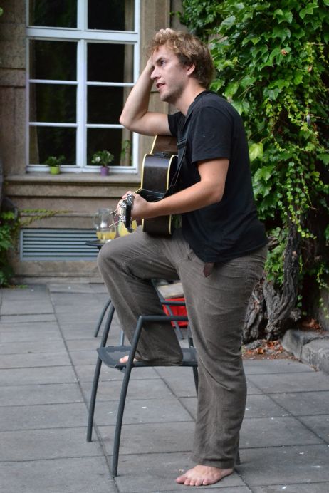 Koncert básníka a písničkáře Jakuba Čermáka (*1986). Sám tomu říká heavy soul. Je synem Jaroslava Waneka, člena kapely Už jsme doma. Věnuje se také natáčení hudebních videoklipů (pro Květy, Zrní nebo Hentai Corporation). Koncert se konal 12. září 2016 na Révovém nádvoří Klementina. Foto: T. Vaisová, NK ČR.