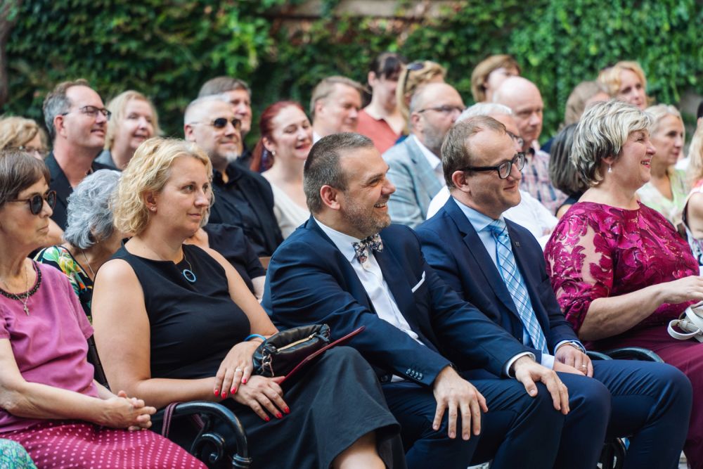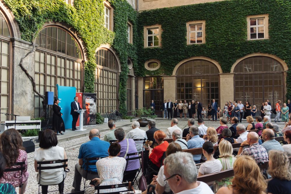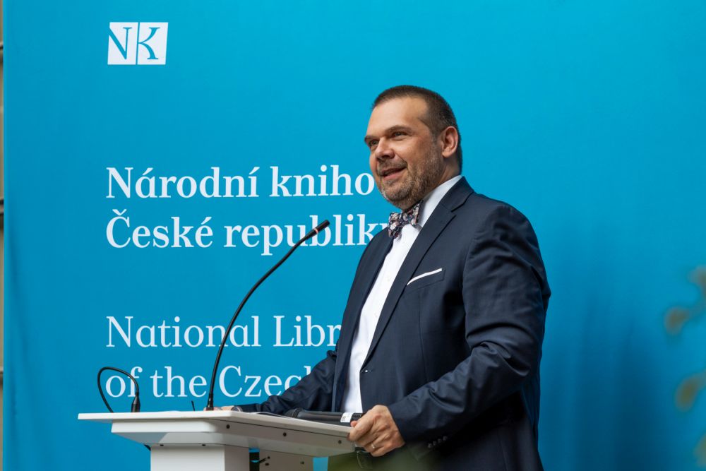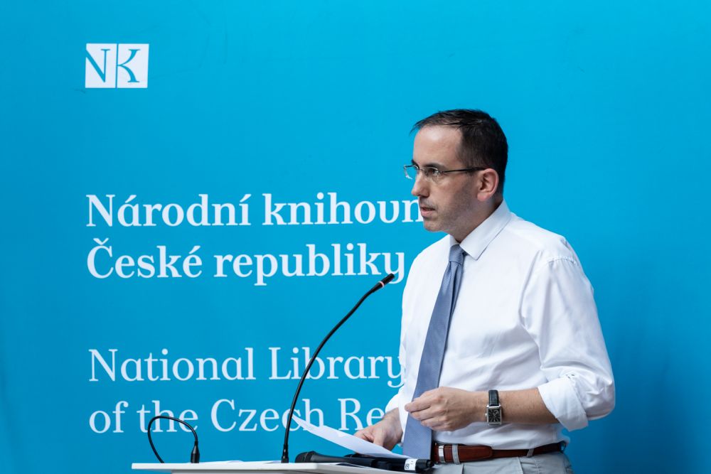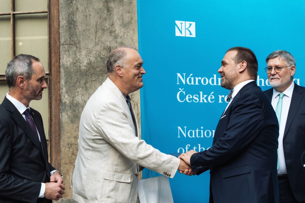 Letošní Cenu Rudolfa Medka obdržel historik prof. Vratislav Doubek, a to za dlouhodobý výzkum a interpretaci česko-ruských vztahů, zejména pak českého pohledu na ruskou realitu, a dále za popularizaci témat spojených s českou státností a se vznikem samostatné Československé republiky v roce 1918. Předání ceny se uskutečnilo za účasti ministra kultury Mgr. Martina Baxy ve čtvrtek 5. září 2024 v prostorách pražského Klementina a bylo součástí programu slavnostního večera ke stému výročí existence Slovanské knihovny. Foto: Z. Homolka Fedorová, NK ČR.