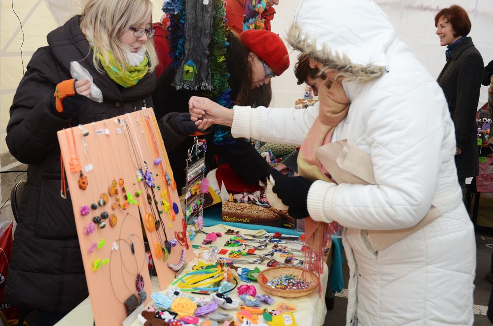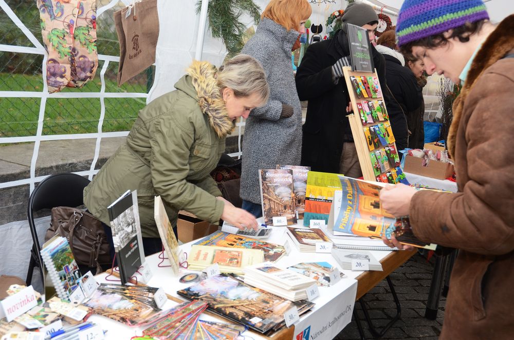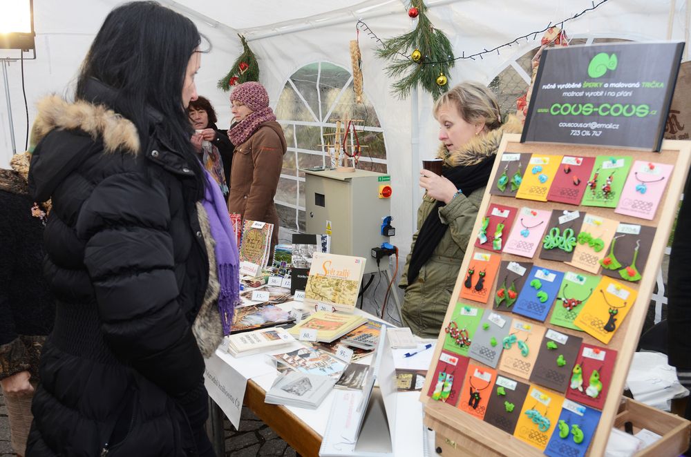 Fotogalerie z vánočního jarmarku v Klementinu, který se konal 4.12. 2013. Jarmark nabídl vánoční atmosféru a inspiraci, k vidění i zakoupení byly šperky z nejrůznějších materiálů, textilní doplňky, výrobky ze dřeva či papíru, korálky, patchworkové textilie, keramika, vánoční dekorace a mnohé další. Na závěr jarmarku byl slavnostně rozsvícen "národní" strom. Pořádala Národní knihovna ČR a Klub tvořivých knihovníků SKIP. Výtěžek z jarmarku bude věnován nadačnímu fondu Klíček na provoz dětského hospice. Foto: Eva Hodíková, NK ČR.