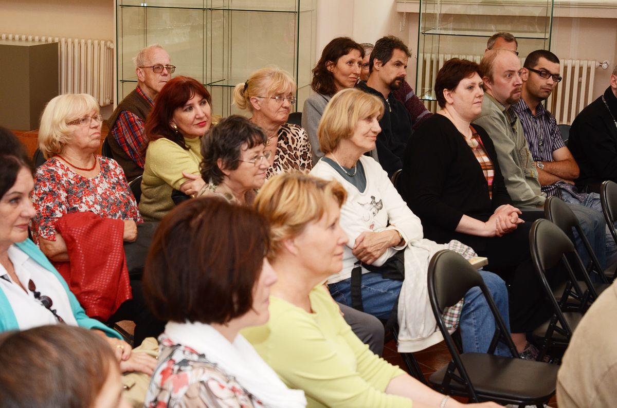 Básně Olgy Szymanské přednesla herečka Gabriela Vránová za hudebního doprovodu kytaristy Davida Fiedlera. Program doplnila výstava autorčiných fotografií-básní spolu s grafikami a kresbami jejích dvorních ilustrátorů. Večerem provázel Jiří Zbořil. Akce se konala 26. 6. 2013 od 18 hodin ve Výstavním sále Galerie Klementinum. Foto: Eva Hodíková, NK ČR.