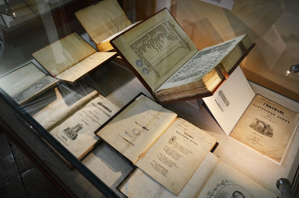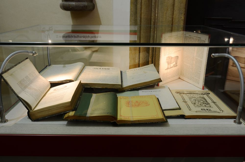 Výstava u příležitosti 100. výročí bulharistiky na Filozofické fakultě UK v Praze představuje rozsah a kvalitu bulharské sbírky Slovanské knihovny na příkladech nejstarších titulů knih, periodik a prací českých bulharistů, ale i českých překladů bulharské krásné literatury nového tisíciletí. Předsálí Všeobecné studovny 9. 11. 2016 –14. 1. 2017. Foto: E. Hodíková, NK ČR.
