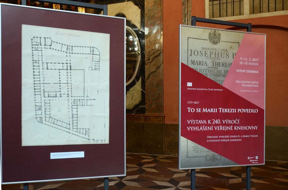Národní knihovna České republiky připravila výstavu s názvem To se Marii Terezii povedlo u příležitosti 240. výročí otevření klementinské knihovny pro veřejnost. Vystaveny jsou originály dokumentů, například oznámení Josefa II. a Marie Terezie o ustavení veřejné knihovny či řád pro návštěvníky čítárny z listopadu 1785. Zrcadlová kaple Klementina 9.-11.2.2017. Foto: E. Hodíková, NK ČR.