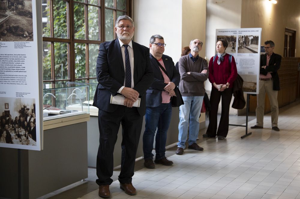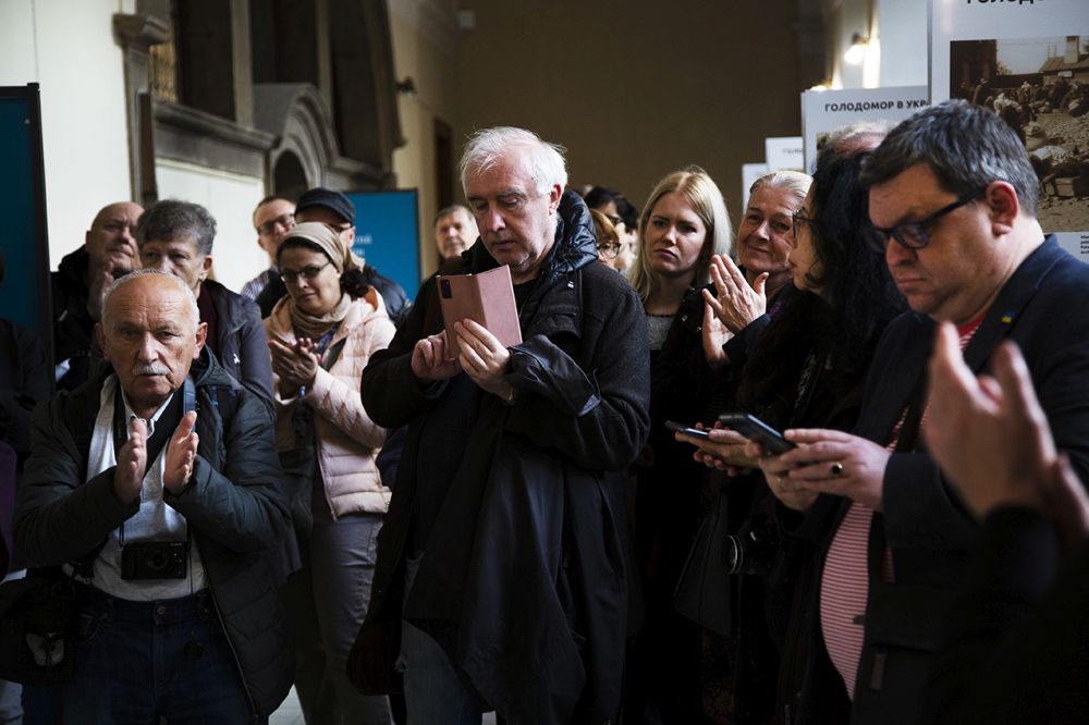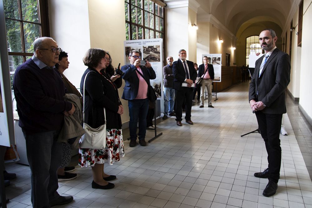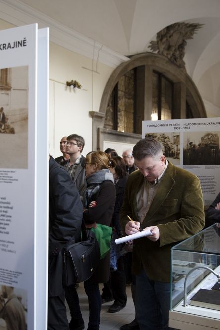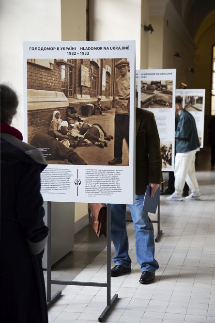 Fotogalerie z vernisáže výstavy, která prostřednictvím fotografií a publikací s texty v češtině a ukrajinštině přibližuje nejdůležitější momenty hladomoru, který roku 1932 na Ukrajině (i v dalších oblastech SSSR) z politicko-hospodářských důvodů uměle vyvolala sovětská moc. Výstavu připravily Akademie národnostních menšin, Slovanská knihovna, Sdružení Ukrajinců a příznivců Ukrajiny a spolek Ruská tradice. Vernisáž výstavy se konala 12. října 2022. Foto: M. Tichá, NK ČR
