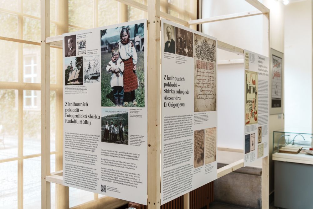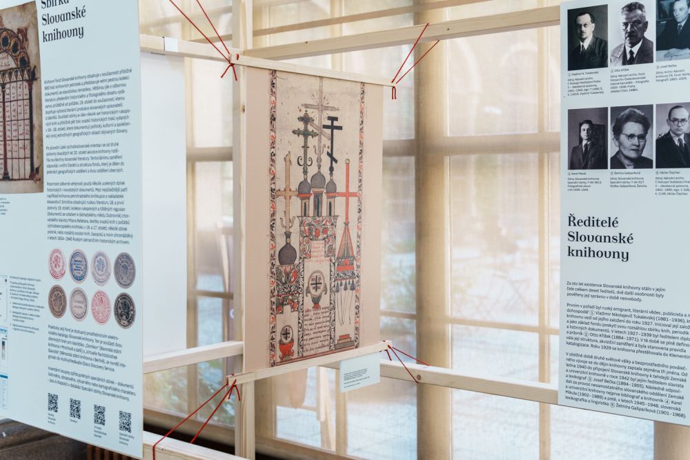 Výstava připravená ke stému výročí vzniku Slovanské knihovny. Přibližuje hlavní data dějin knihovny, důležité osobnosti, ale také nejzajímavější části knihovního fondu a unikátní materiály ze sbírek obrazových dokumentů. Kromě toho představuje publikační, výstavní a organizační činnost knihovny či její podíl na odborných projektech slavistického knihovnictví. Foto: Z. Homolka Fedorová, NK ČR.